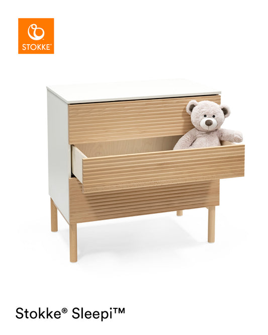 Versatile and beautiful, the Stokke® Sleepi™ Dresser has three spacious drawers that open and close with a gentle push for loads of storage & easy access to baby´s clothes, toys & treasures.