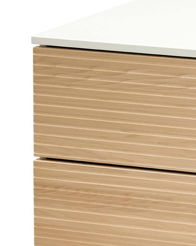 Made with clean Scandinavian design, solid wooden legs and a tactile front surface in beech, it combines form and function with quality and durability.