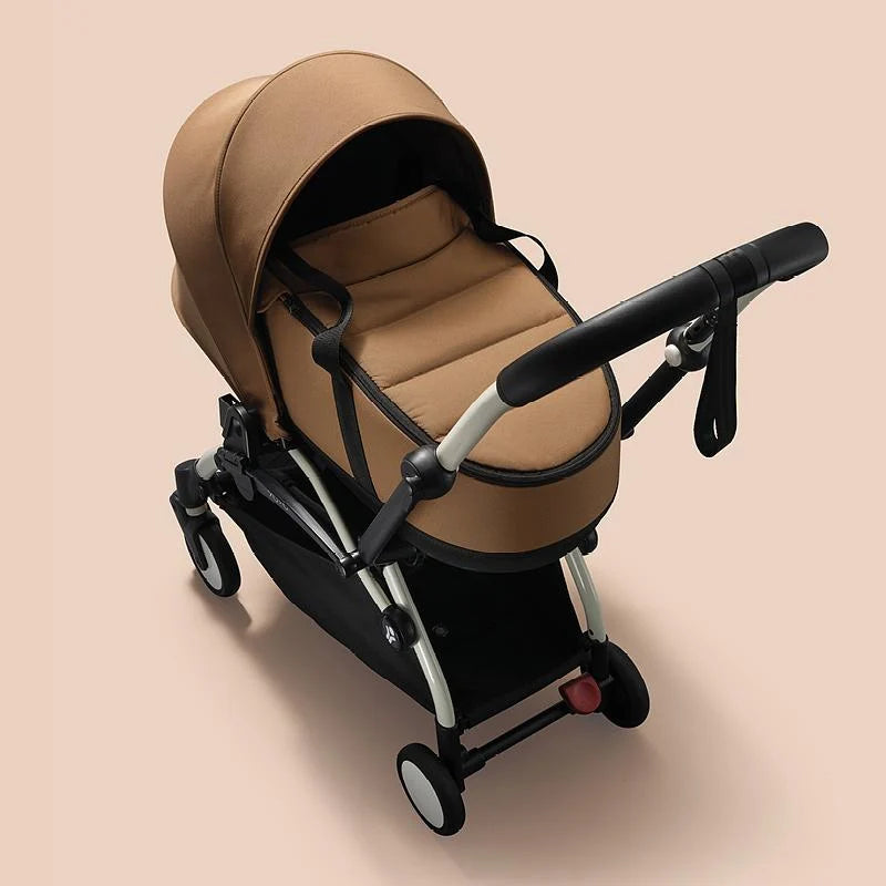 A real cocoon for your child, the newborn shell clips onto YOYO³ frame in a single click, and can be carried by hand or set on the floor.